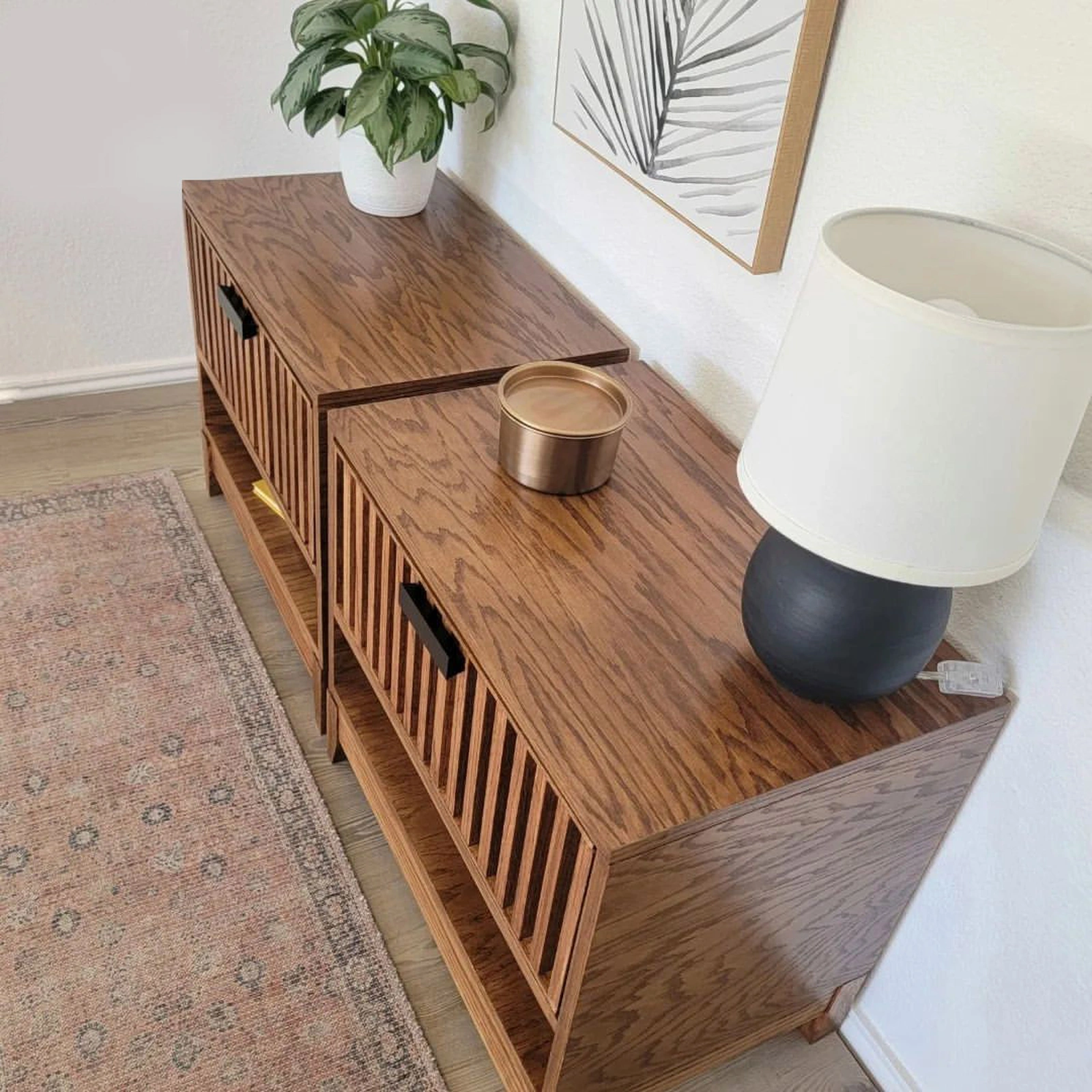 Öneri: Üzerine metal çerçeveli bir tablo ve geometrik bir masa lambası eklenerek modern bir görünüm yakalanabilir.